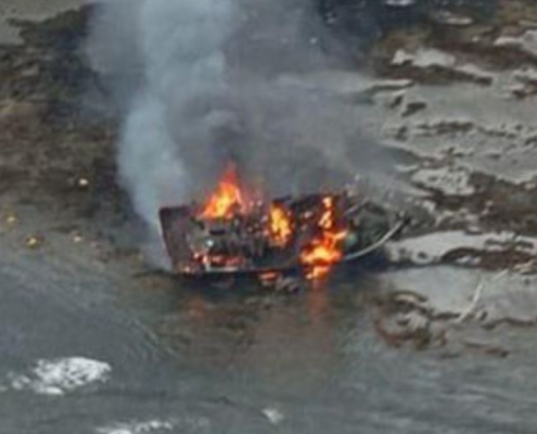 Caletón Blanco closed after fishing boat ran aground and caught fire