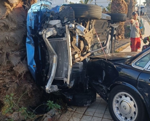 NewsA car was shunted onto its side by another vehicle on the Avenida de las Palmeras in Costa Teguise yesterday.