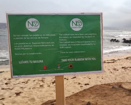 NewsAfter Famara residents complained about the placement of rubbish bins on Famara beach, the bins have been removed with informative signs put in their place.