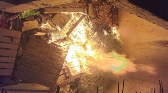 Fire in abandoned construction site