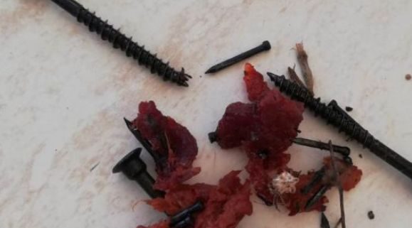Meat and screws found in trap