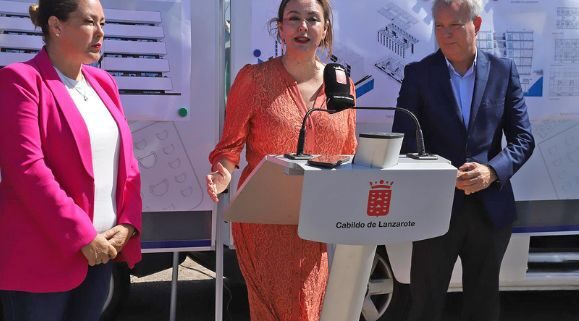 NewsCabildo President, María Dolores Corujo, alongside councillor Sebastián Franquis and the Mayor of Arrecife, Astrid Pérez, have presented the plans for the first of numerous social housing buildings to be constructed in the Maneje area.