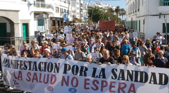 News200 protestors marched in Arrecife yesterday to protest at delays in the opening of the radiotherapy unit at the Dr José Molina Orosa Hospital in Arrecife.