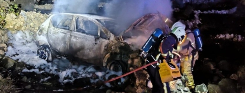 NewsA collision between two cars near Masdache yesterday morning resulted in one vehicle being burnt out completely.