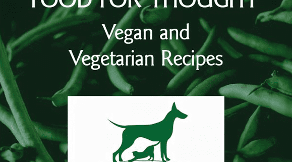 Jilly Simmons' vegan/vegetarian recipe book "Food for Thought", written to raise funds for SARA, has over 150 recipes, a wipe-clean cover, is still on sale.