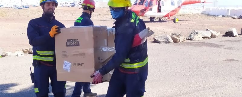 Lanzarote received a thousand coronavirus testing kits yesterday, as a Canarian Government helicopter delivered the vital supplies directly to a landing zone near the hospital.