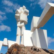 At that point in his career, Manrique was rapidly heading towards the purely abstract art of his later years and the monument is unapologetically avant-garde in style. Strongly influenced by cubism, the teetering assembly of white blocks and curved shapes represents a human being with two animals at his sides, but further details remain difficult to decipher.