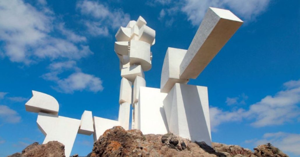 At that point in his career, Manrique was rapidly heading towards the purely abstract art of his later years and the monument is unapologetically avant-garde in style. Strongly influenced by cubism, the teetering assembly of white blocks and curved shapes represents a human being with two animals at his sides, but further details remain difficult to decipher.