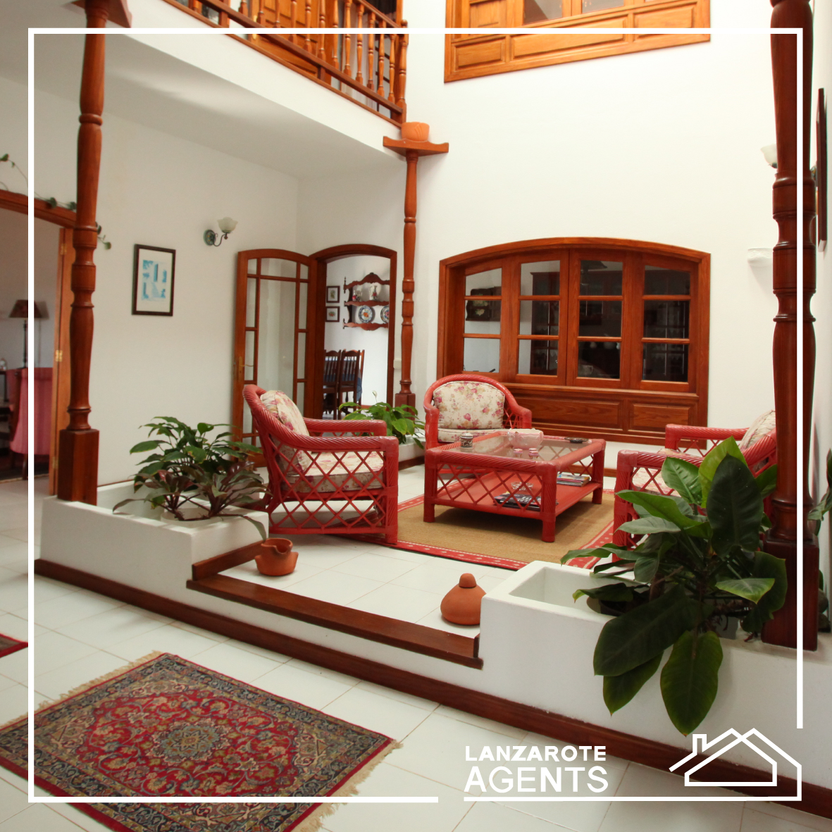 Upon entering the property, you are welcomed by a large entrance hall that opens to a central Canarian-style patio, now transformed into a cozy second living room flooded with natural light.
