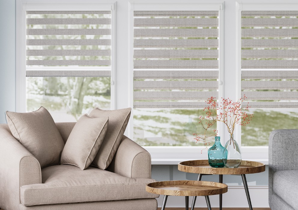At first glance, these blinds are a stunning visual addition to any room. But their true genius lies in their innovative design. They feature an alternating fabric mix of soft, light-diffusing voile and a beautifully woven fabric.