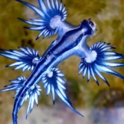The beautiful slugs are predators that live at the surface of the ocean preying on organisms such as the Portuguese Man o’ War.  They then store the stinging cells of these creatures to use in their own self-defence.