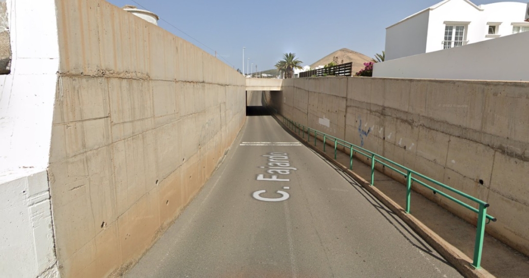 Calle Fajardo connects Tías’s central avenue with Los Lirios via a narrow underpass that runs beneath the LZ-2 main road. A pavement that is too small for a pram or wheelchair is the only pedestrian access.