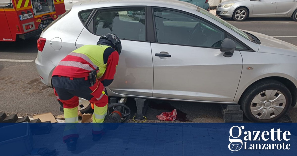 Firemen rescued a woman who had fallen beneath a car in Costa Teguise yesterday morning.