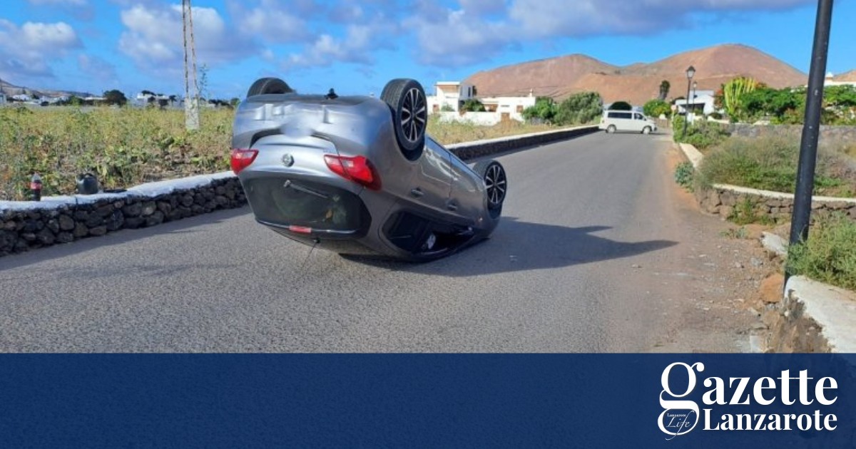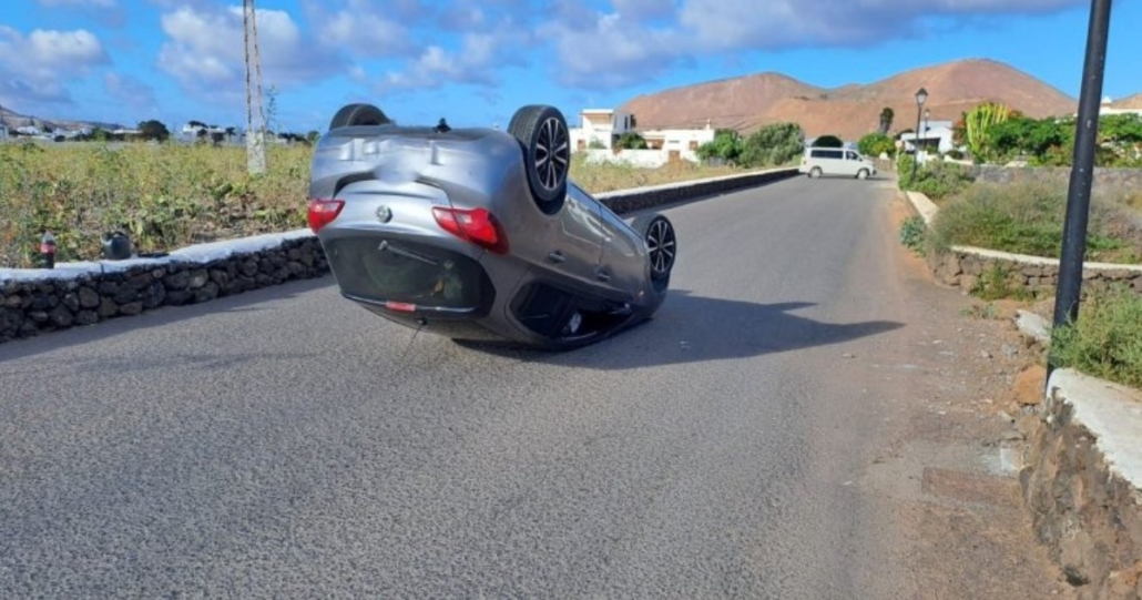 Another day, another upside-down car on Lanzarote. This time the vehicle in question flipped over in Guatiza at around 4pm yesterday.
