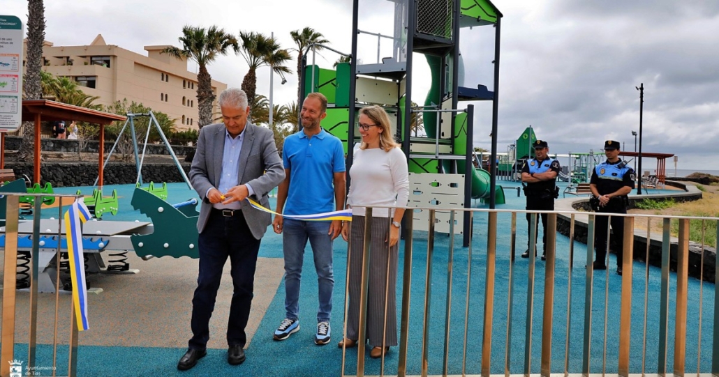 Tías Mayor, José Juan Cruz, officially opened the new playground in Matagorda’s seafront yesterday, accompanied by Parks Councillor Christopher Notario, and Commerce Councillor Miriam Hernández.