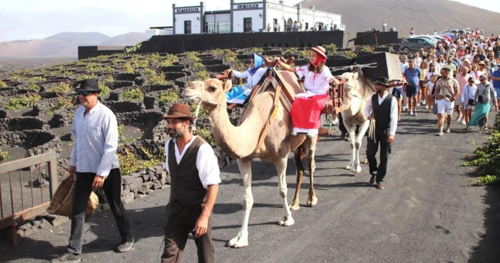 However, the day has also been linked with other midsummer festivals celebrating wine, and Lanzarote is no exception. On the morning of the 15th, workers in traditional dress will take camels into the vineyards near Bodegas la Geria to collect grapes.