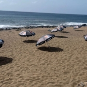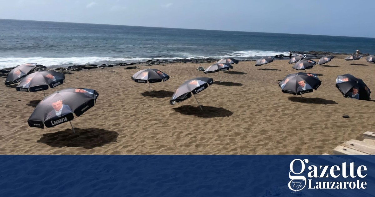 A right-wing group yesterday left several umbrellas on Playa Bastian in Costa Teguise as a protest against Spanish Prime Minister Pedro Sánchez.