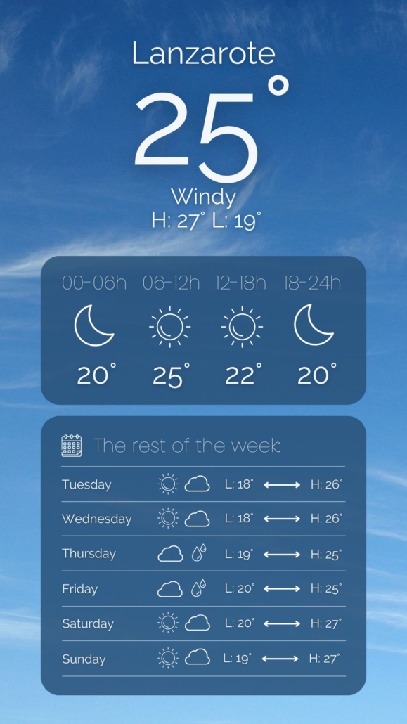 Our forecast information is taken from AEMET’s Tias weather station – forecasts will vary slightly depending on the weather station.