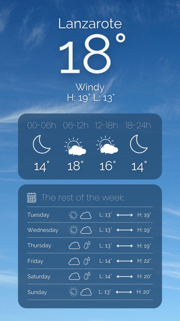 Our forecast information is taken from AEMET’s Tias weather station – forecasts will vary slightly depending on the weather station.