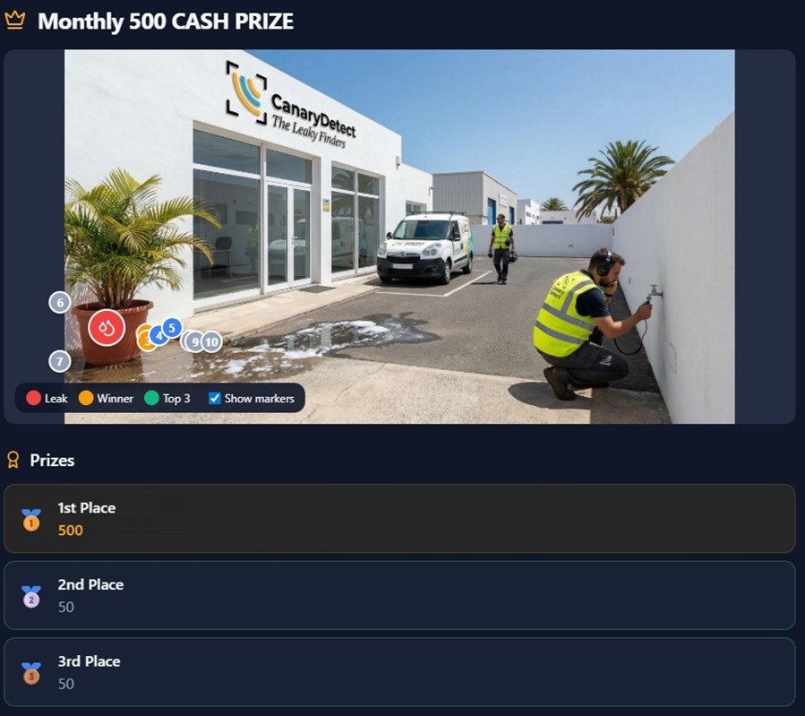 Fancy yourself as a detective? Canary Detect, the leading water leak detection company on Lanzarote, has launched an exciting and free to play competition called “Spot the Leak.” The game offers a unique blend of entertainment, education, and community engagement.