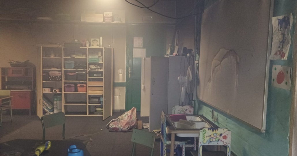 As for the damage caused, one of the classrooms (the preschool classroom) suffered the worst damage, with the tables and chairs burned. The fire that broke out in this room also filled the adjacent classrooms with smoke, forcing the school’s cleaning staff and municipal services to ventilate the area. The students were relocated to other classrooms upon their arrival at the school.