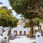 Immediately after Manrique-designed square was completed in 1950, the cross was erected by the Falange, the only political party permitted under Franco’s dictatorship, in tribute to around 50 islanders who died fighting for the fascist side in the Civil War. It was one of hundreds of “monuments to the fallen” erected by the victorious