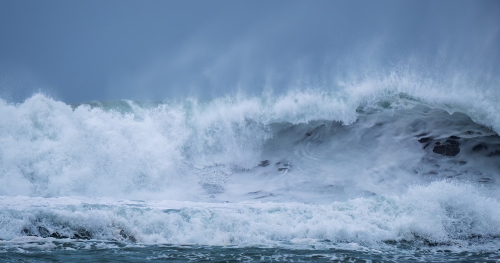 The alert begins at 8 pm this evening (Wed 3rd December) and ends at 11.59 pm tomorrow (4th December). Waves of up to 4 metres are expected offshore and high tide at midday tomorrow could bring waves of 3 metres to shore, with a long wave period of 16 seconds.