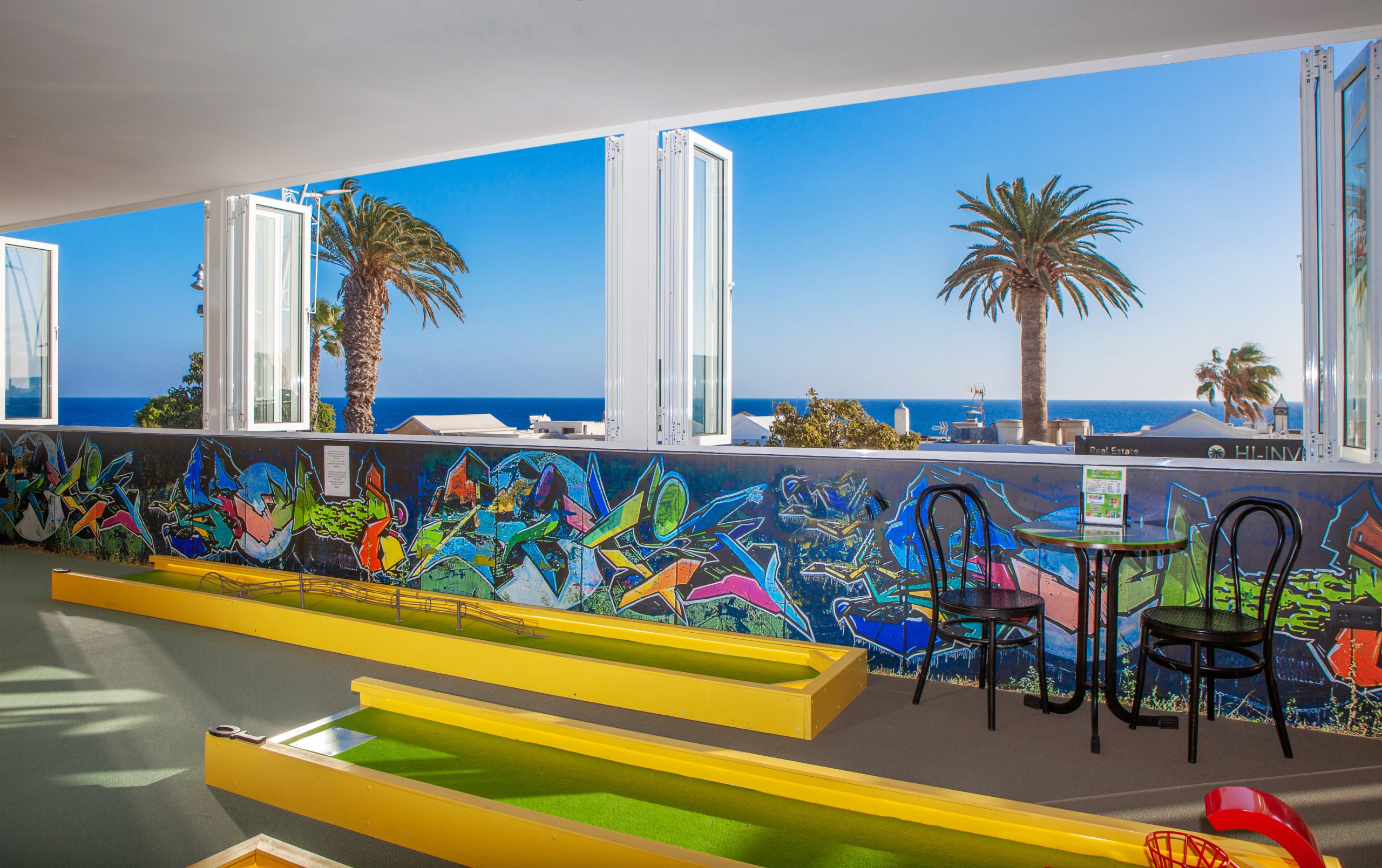 Puerto del Carmen’s nightlife isn’t just about bars. For a truly different evening, try the glow-in-the-dark minigolf at Crazy Minigolf Lanzarote.
